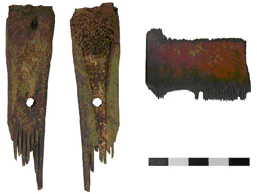 Mittelalterlicher Langzinkenkamm (13./14. Jh.) und zweizeiliger Einlagenkamm