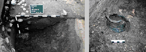 Mittelalterliche Gerbgrube. Querprofil bis auf die Oberkante des rinden-