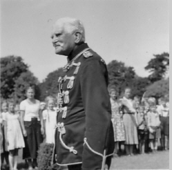 Seitdem ist Mackensen der einzige General, der die Uniform eines Regiments, nämlich der Leibhusaren trägt. So kennen wir ihn von vielen Bildern, zum Beispiel am ‚Tag von Potsdam‘. Mackensen wurde nach drei Söhnen 1897 noch eine Tochter, Ruth, geboren, die später im Kirchenkampf stand, verlor aber 1905 seine Frau. Aber schon 1907 heiratete er erneut, diesmal die halb so alte Leonie Gräfin von der Osten. Dienstlich war er als Kommandierender General des XVII. Armeekorps auf die erste Stelle der Provinzhierarchie Westpreußens gerückt. Im ersten Weltkrieg steigt er endlich in die höchste Würde auf, er wird für seinen Sieg in Galizien am 22. Juni 1915 zum Generalfeldmarschall befördert, besiegt Rumänien und wird schließlich der ‚Schlächter Serbiens‘ genannt. Ähnlich wie Hindenburg wird er später zum Mythos des ersten Weltkriegs verklärt und gefeiert. Hitler beruft sich auf ihn, besonders nachdem Hindenburg, von 1925 bis 1934 Reichspräsident und Ersatz-Kaiser, gestorben war.