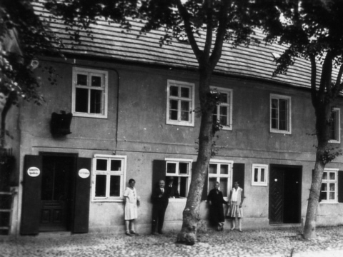 Carl Stephani mit seiner Familie vor der Adler-Apotheke.